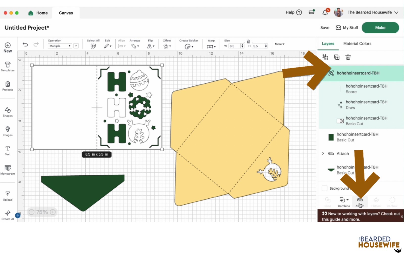 Attach everything together by highlighting the GROUP the card base is under and selecting the ATTACH option in lower right hand corner.
