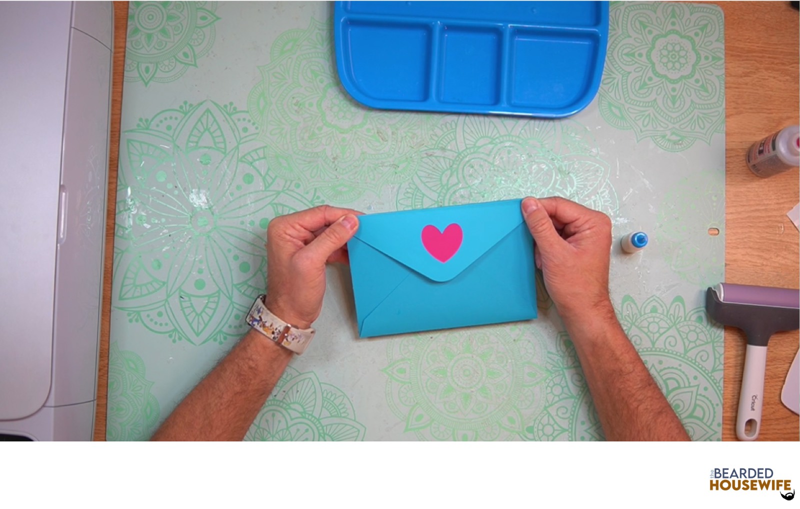 Place the inlay panel over the cutout on the envelope making sure to center it well.