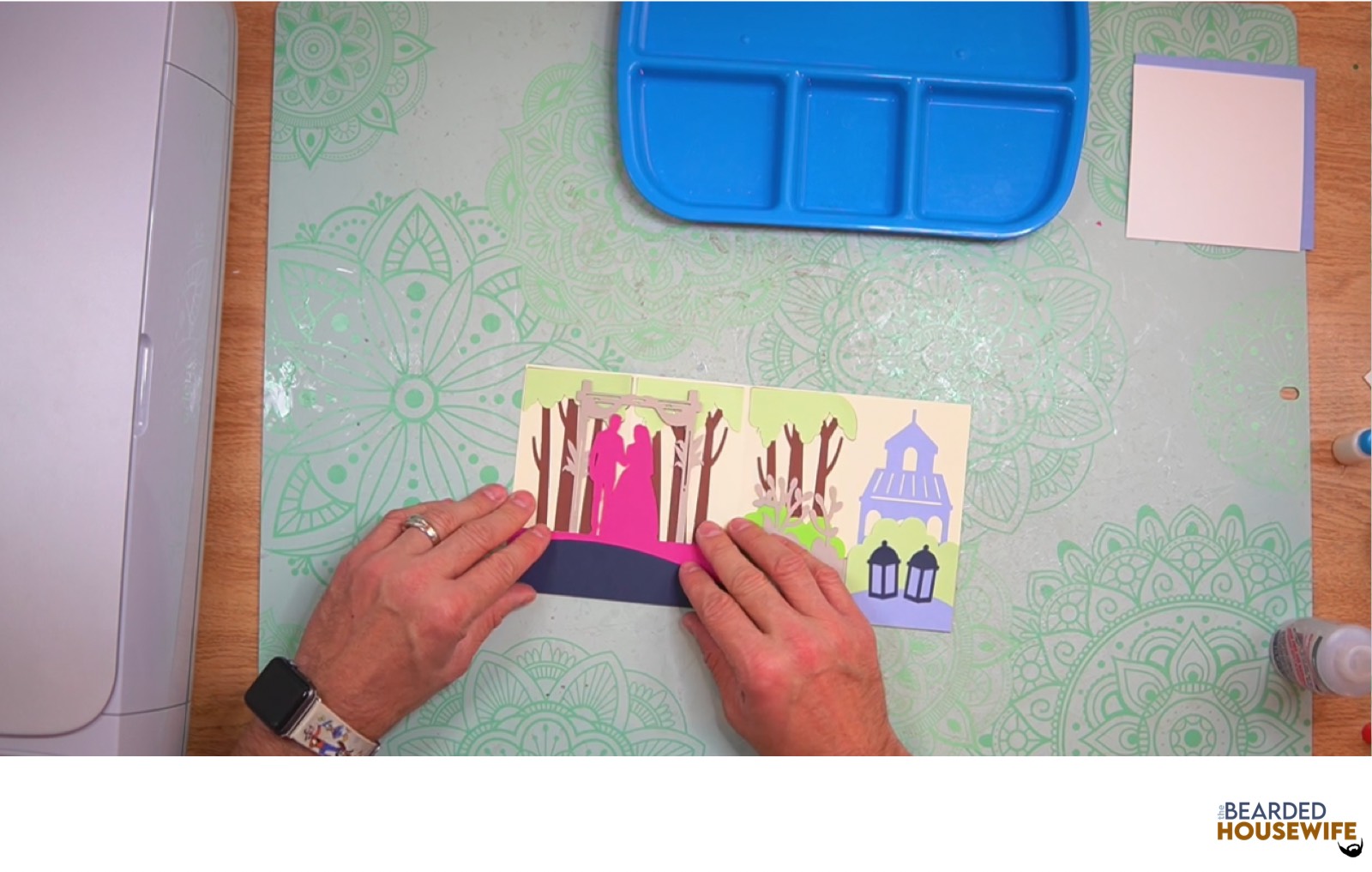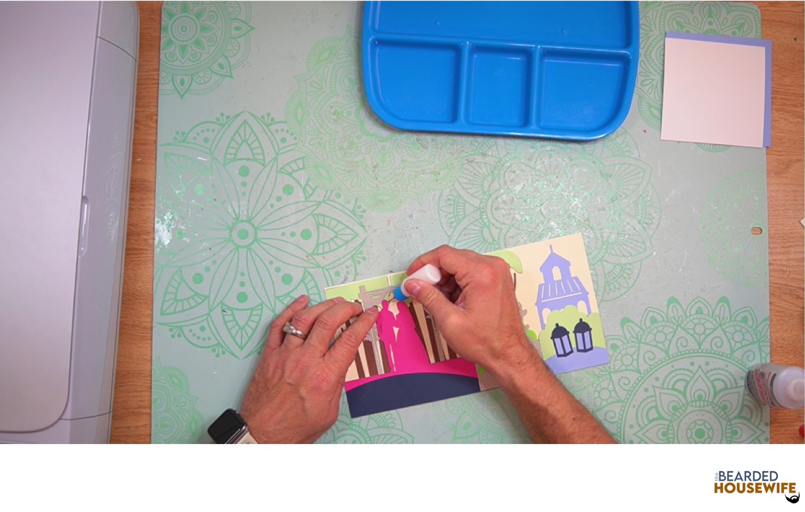 Begin layering the cover panels for the card base. I have a Layering Guide within the download to help act as a guide.