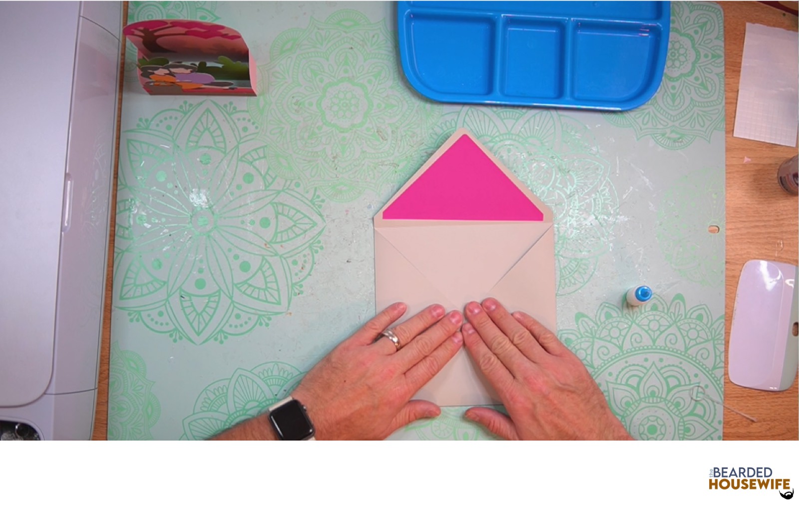 Place the inlay panel over the cutout on the envelope making sure to center it well.